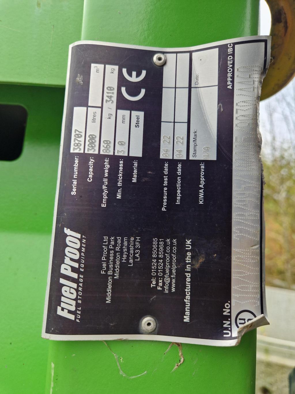 Nærmest ubrukt Fuel Proof dieseltank 3 000L selges.