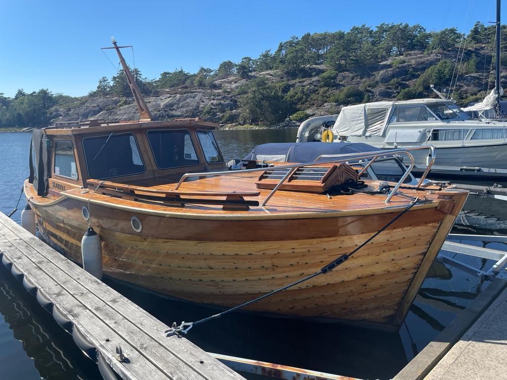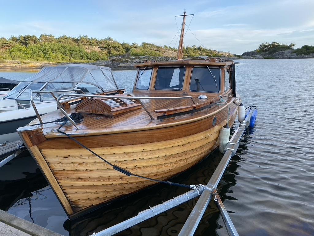 Det må påregnes skraping av taket og noen små detaljer som ror og treverk rundt vinduer før påføring av olje / lakk.