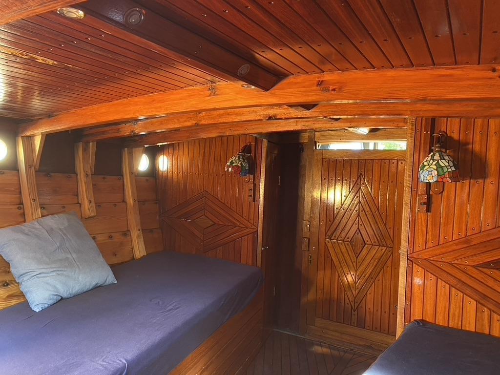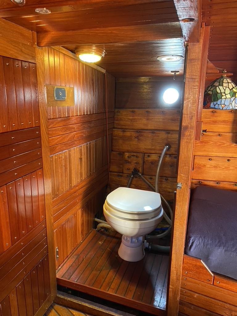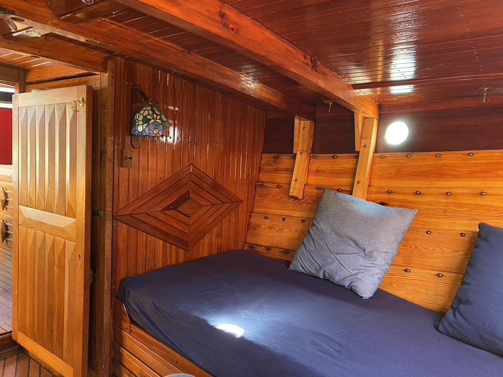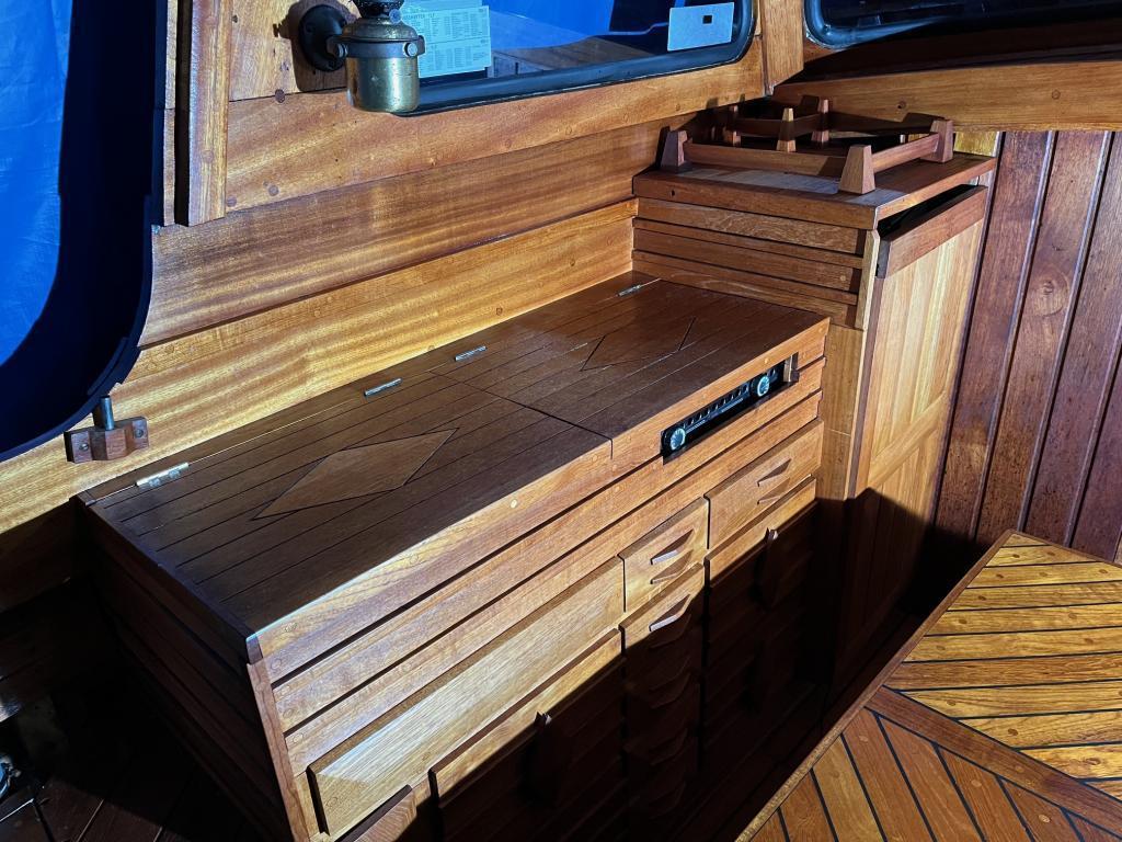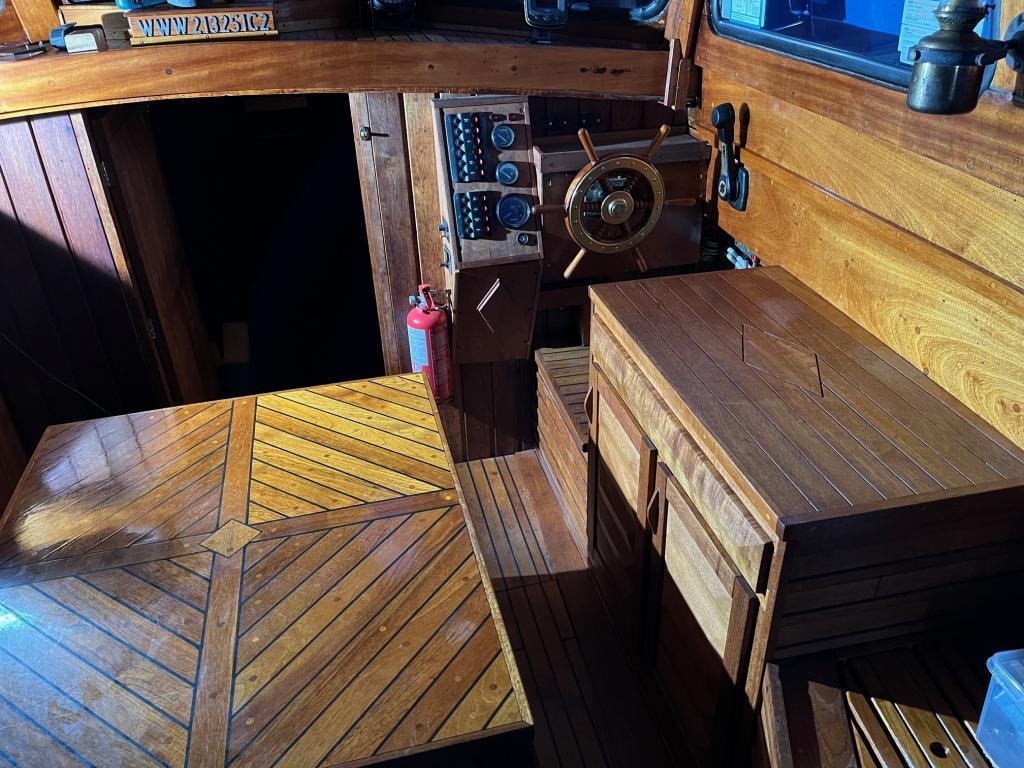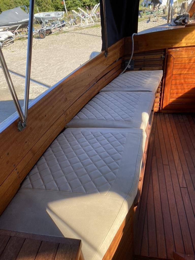 Innredning i teak ble laget ny og under dekk ble det laget et eget rom for toalett.