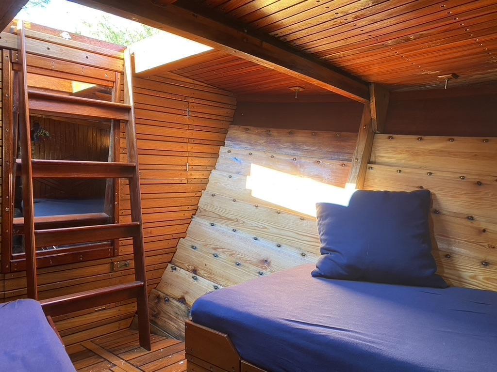 To benker, en på hver side for behagelig overnatting under dekk.