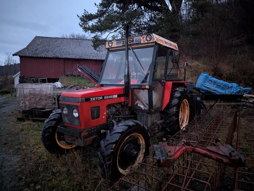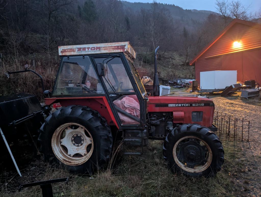 En god Zetor som de siste årene for det meste har blitt brukt til vedmaskin og lignene.