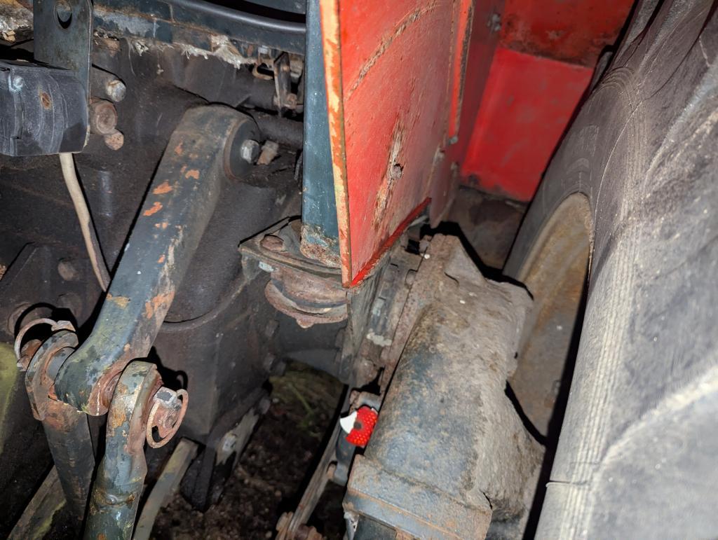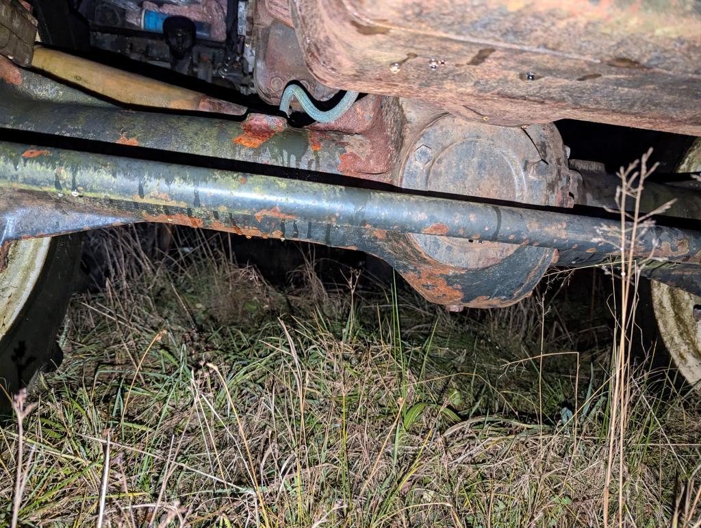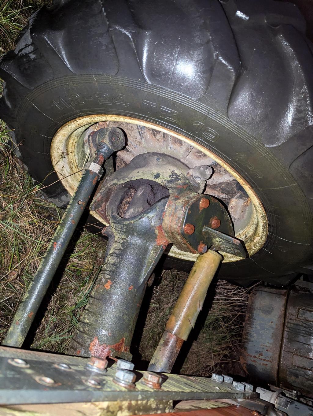 - Det ene hjullageret framme er fjernet, bør ikke kjøres med langt før nytt hjullager er montert.