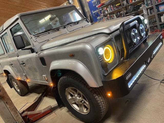 Nye frontlykter i led. Parklys/markeringslys hele veien rundt, begge sider.