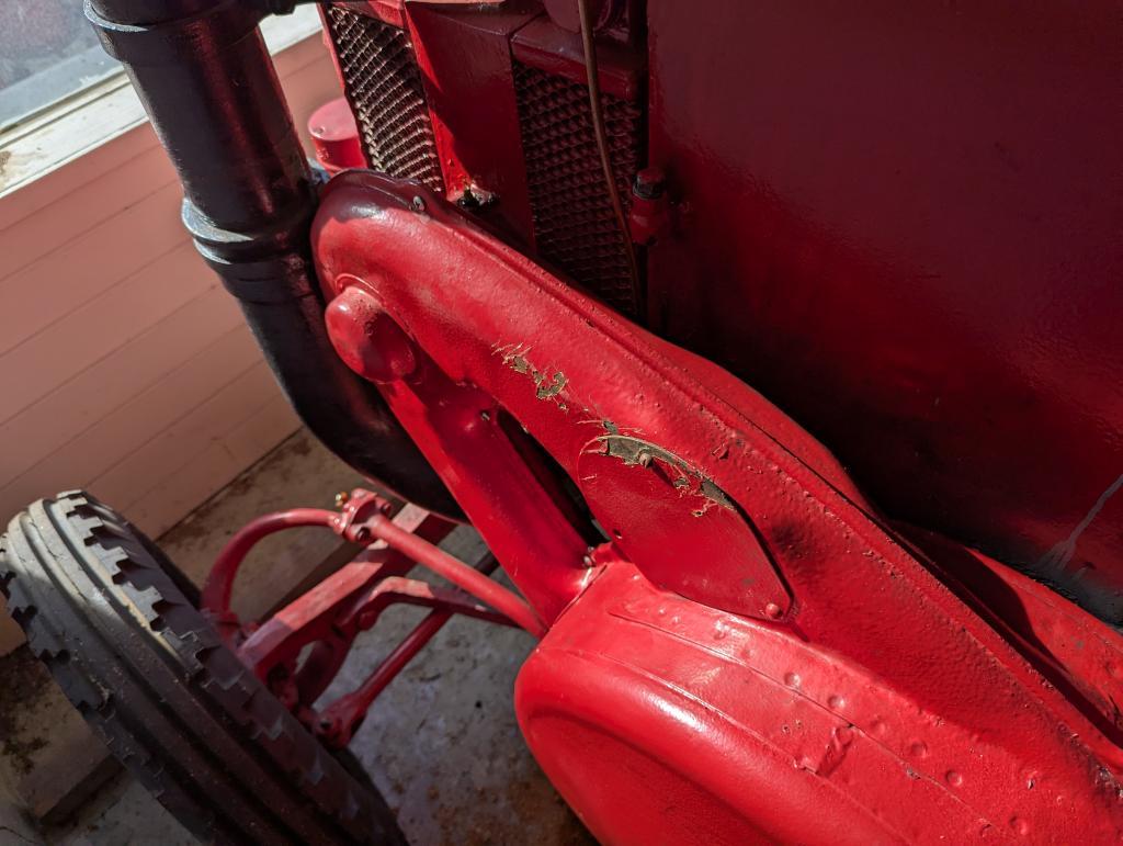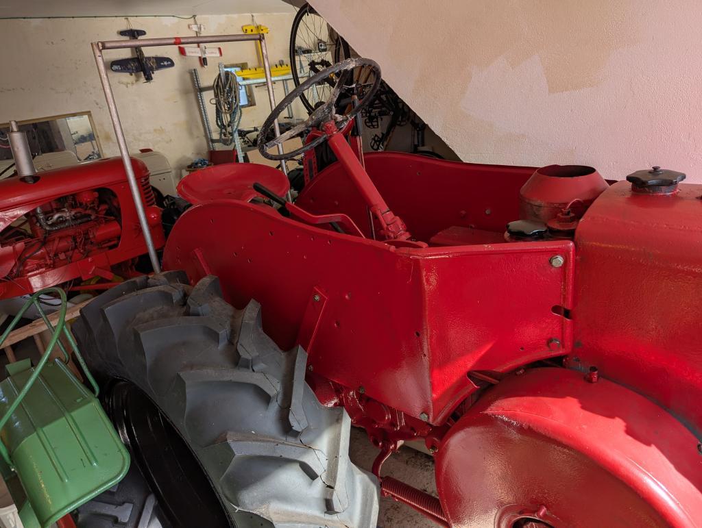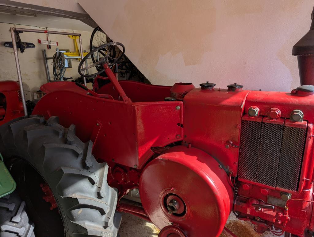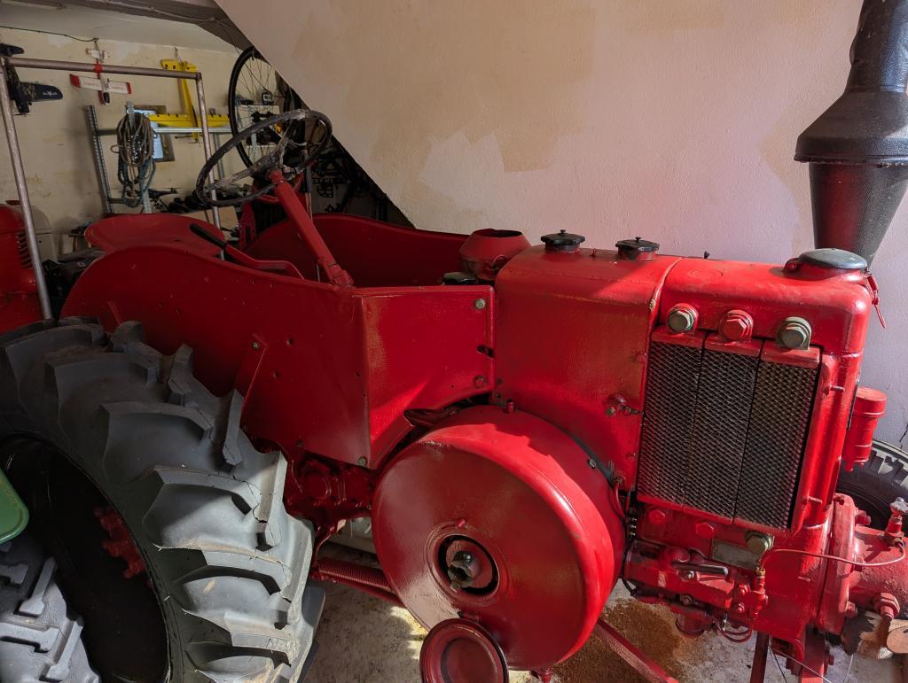 Traktoren er god ivaretatt, tidligere pusset og malt opp. Lagret tørt inne. Starter og går som den skal.