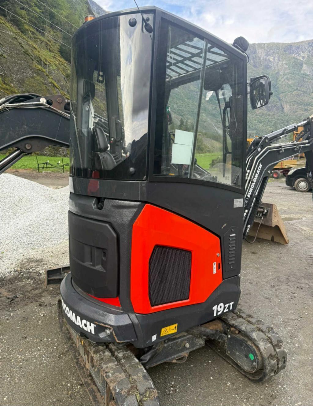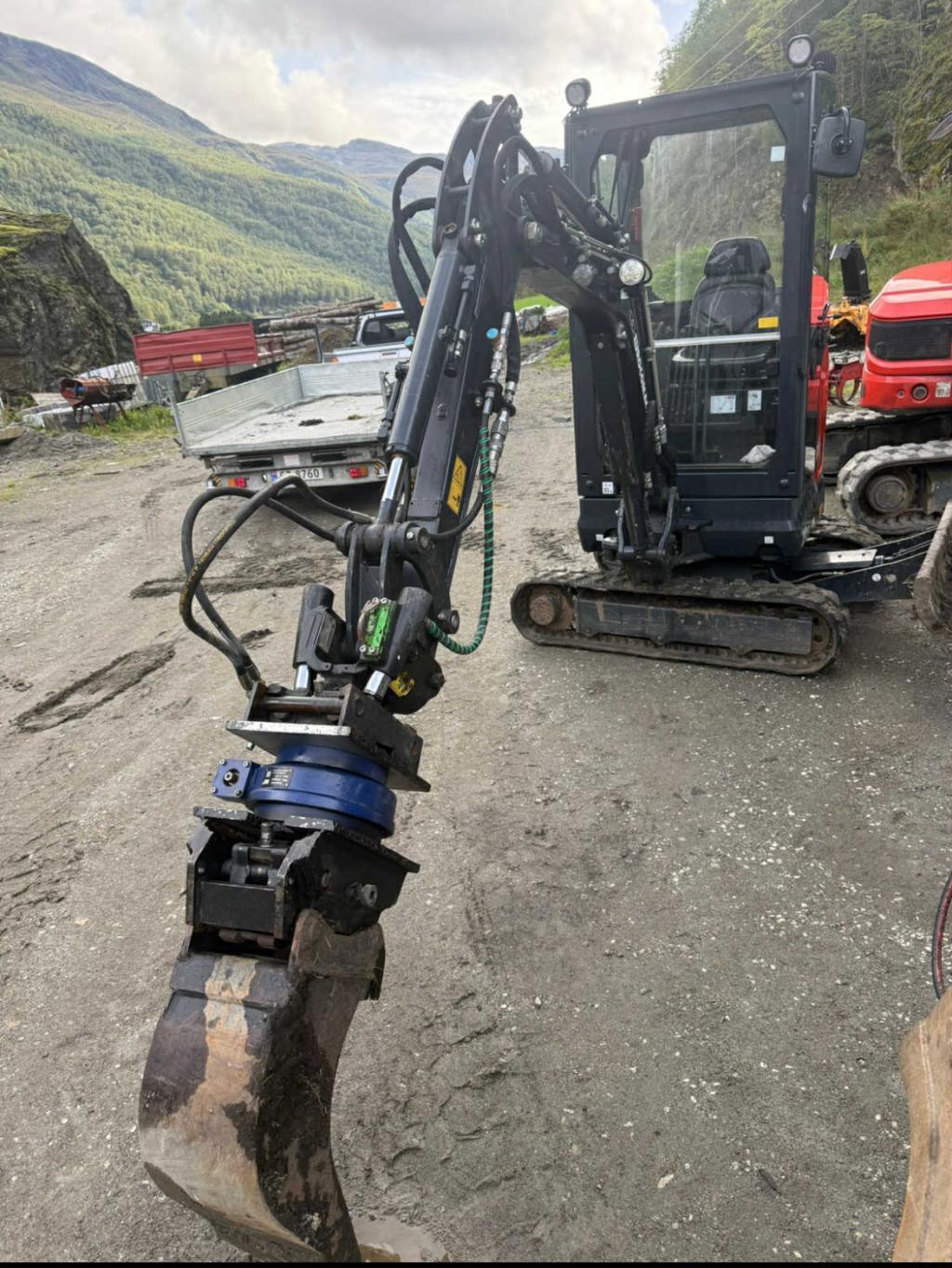 Selger lite brukt minigraver med heimelaga rotor og powertilt er steelwrist.