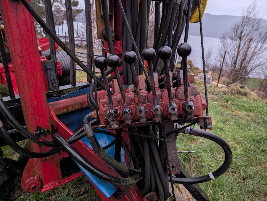 - Styrekontroll til tømmervogn kan festes på triangel feste og styres fra styrhuset på traktor.
