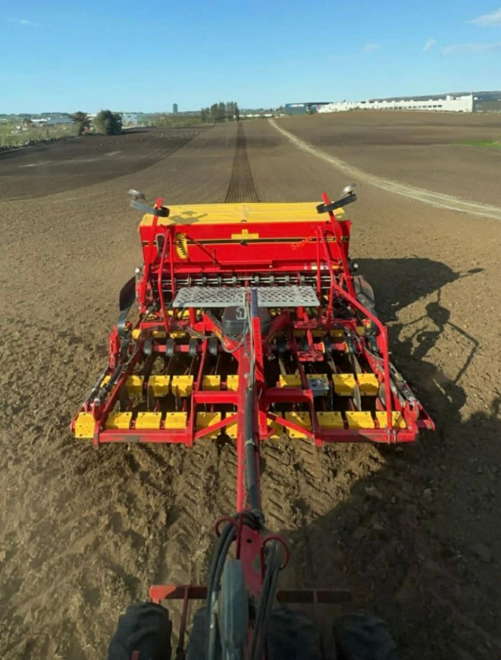 Kan så korn, gjødsel og attlegg i ein overfart.