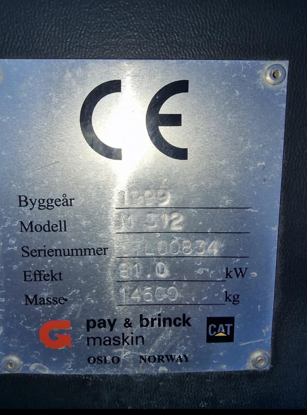Cat M312 med lite timer selges!