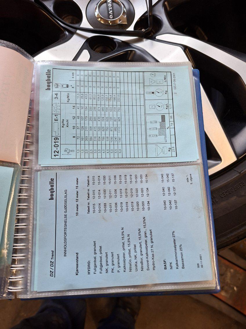 - Instruksjonsbok med tabeller for innstilling.